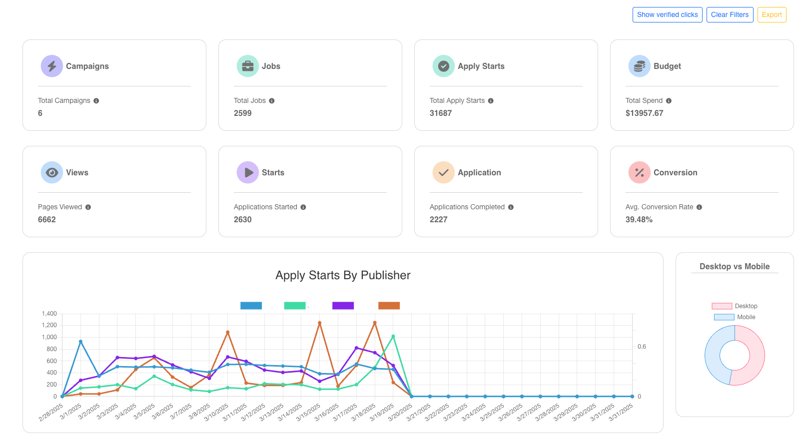 Gain real-time budget management with daily reconciliation for a 100% invoice match. You can set budgets for individual jobs or entire campaigns and easily see where your budget is being spent.